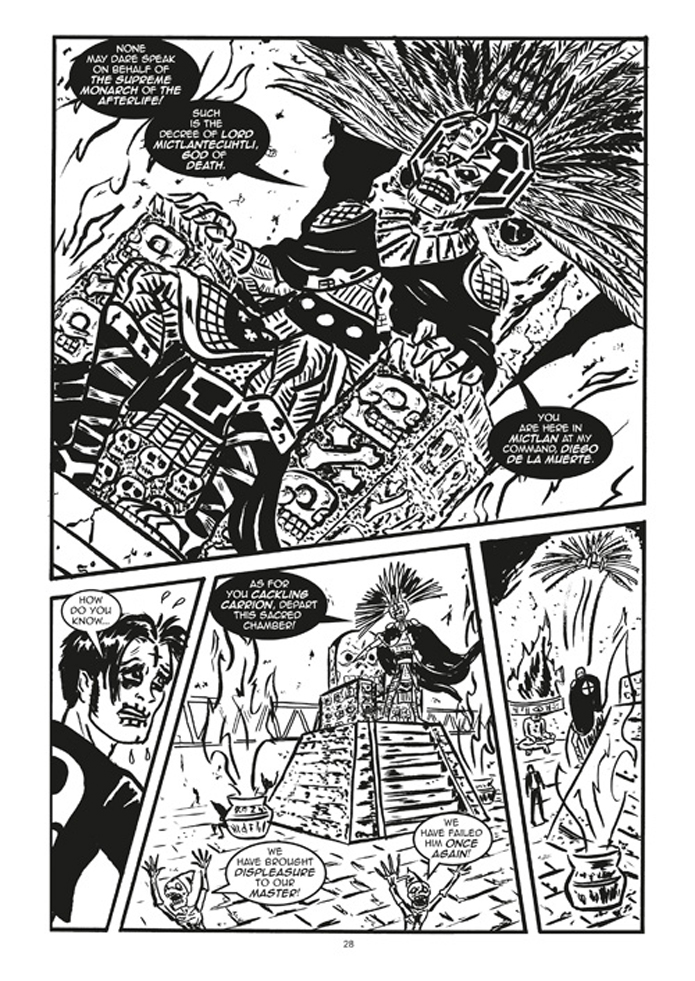 On his 21st birthday, November 2, the Day of the Dead, Diego de la Muerte finds himself abducted, sacrificed and resurrected by the Aztec gods of Death & Destiny! He soon arrives in Mexico at Mondragon's Circus & Festival of Freaks. There he sees humanity at it's best... and worst, all the while trying to discover his new role as El Muerto, the Aztec Zombie!