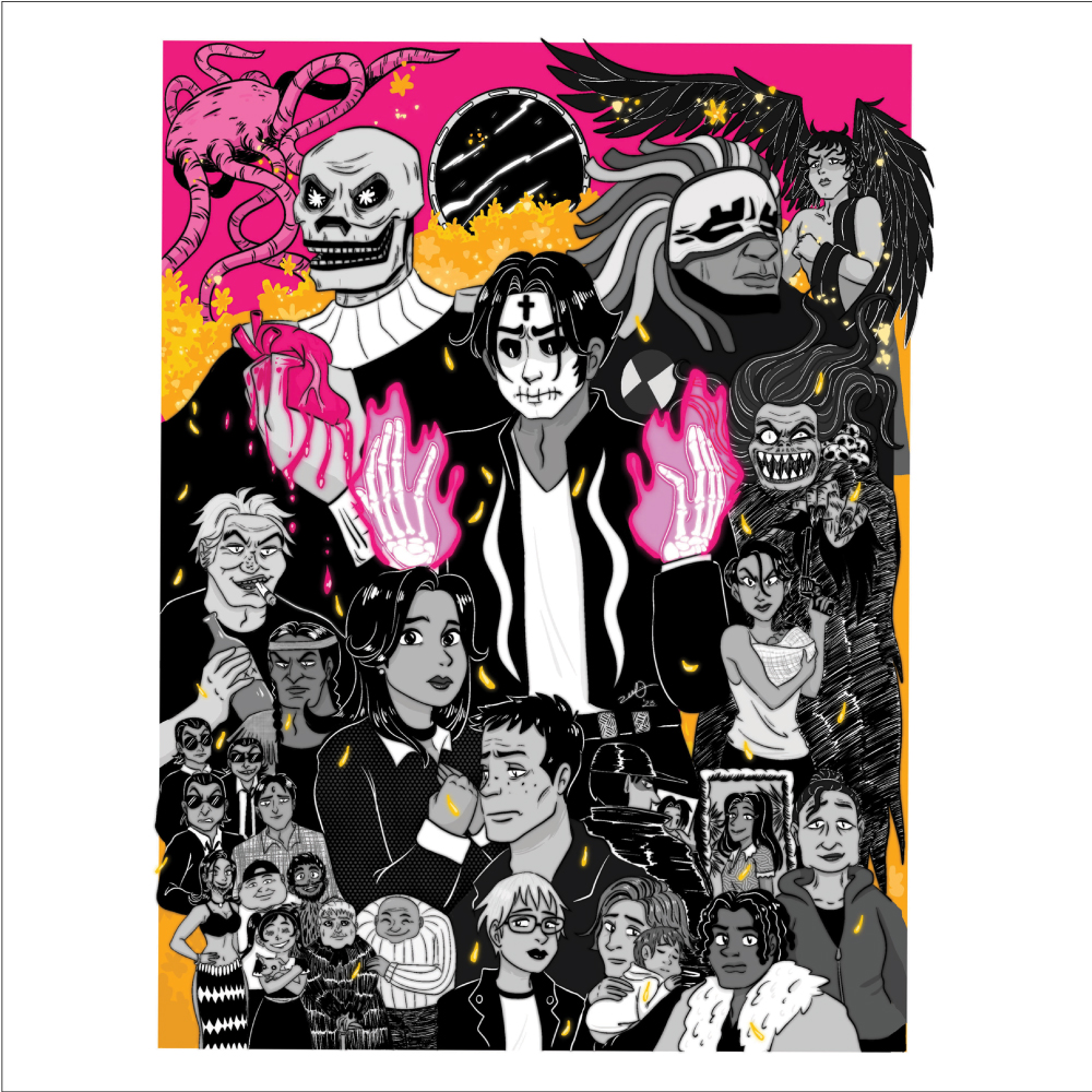 Published during the 25th Anniversary of El Muerto this oversized collection features 25 years worth of short stories, rarities and other elusive El Muerto comics! Includes El Muerto's appearance in the Baldo newspaper strip, the mini comic that was included in the EL MUERTO DVD, the first appearances of Manga Muerto, Cochito and San Patricio, auto bio stories and so much more! Also features a Foreword by Alex Grand (Comic Book Historians.Com), an introduction by Steven Butler (Archie Comics, Scarlet Spider) and an essay by Dr. Mathew Sandoval. Plus a 13 page Guest Artist Pinup Gallery.