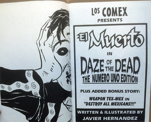 ONLY ONE AVAILABLE! The original b&w photocopied El Muerto comic! The very first appearance of the character, released 23 years ago in 1998. Featuring his origin story "Daze of the Dead". (The condition of the comic is in decent shape, but it's not a mint condition book). 36 pgs.